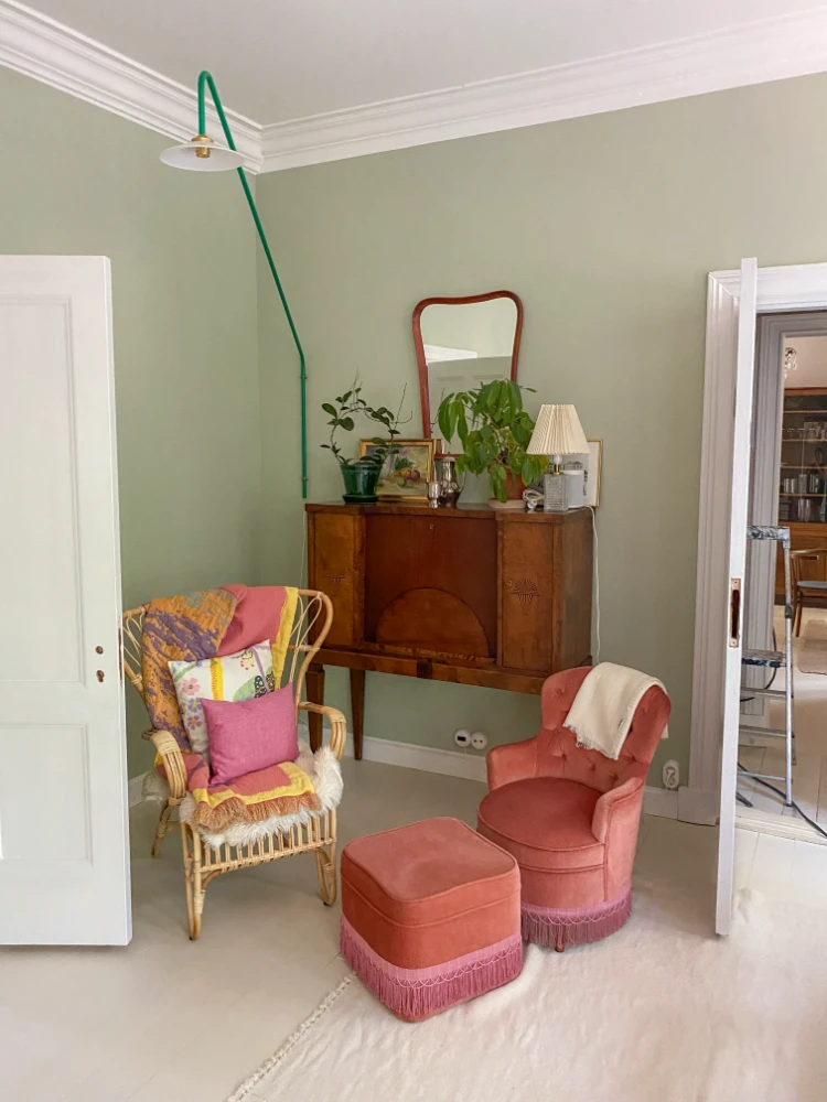 Maalaus vesipohjaisilla väreillä Farrow & Ball -tuotemerkiltä, jotka asiakas on valinnut itse. Erilaisia sävyjä kaikissa huoneissa.